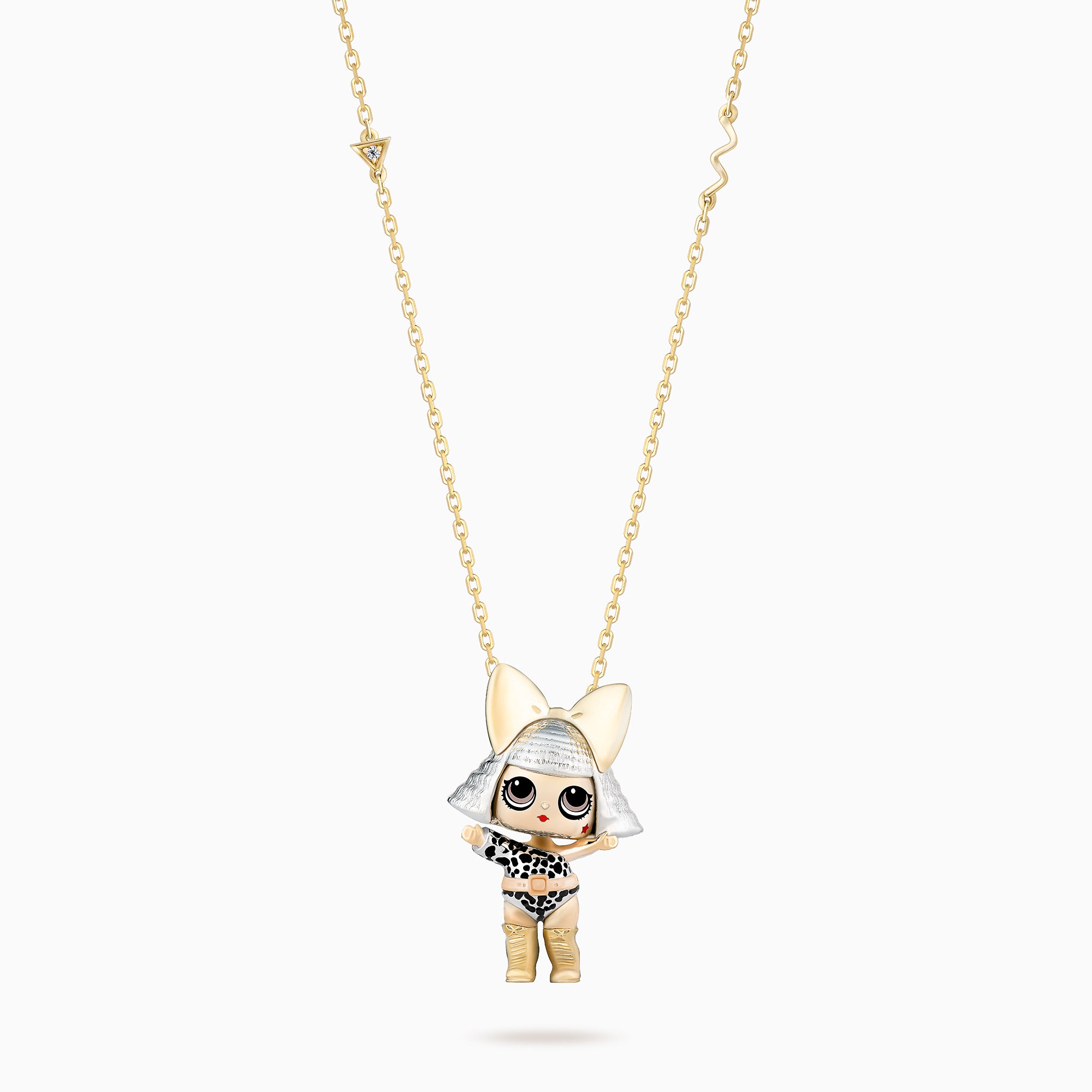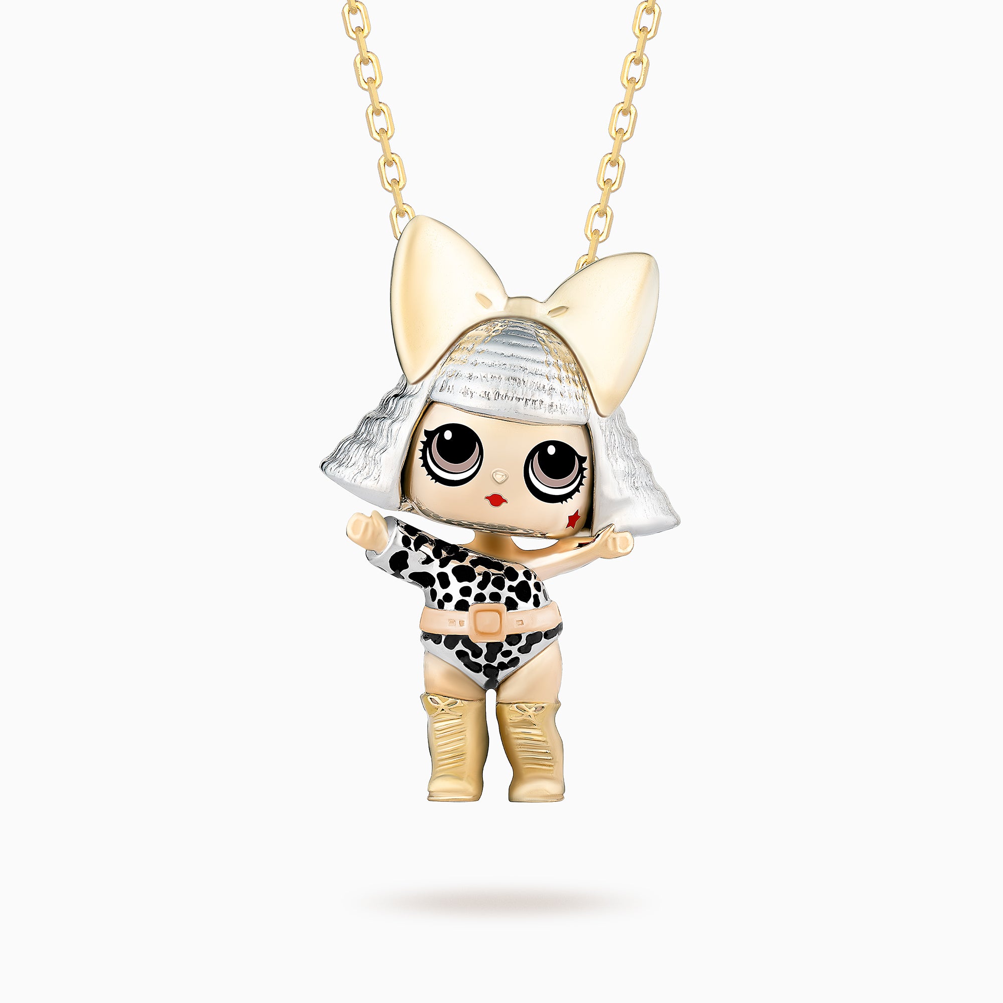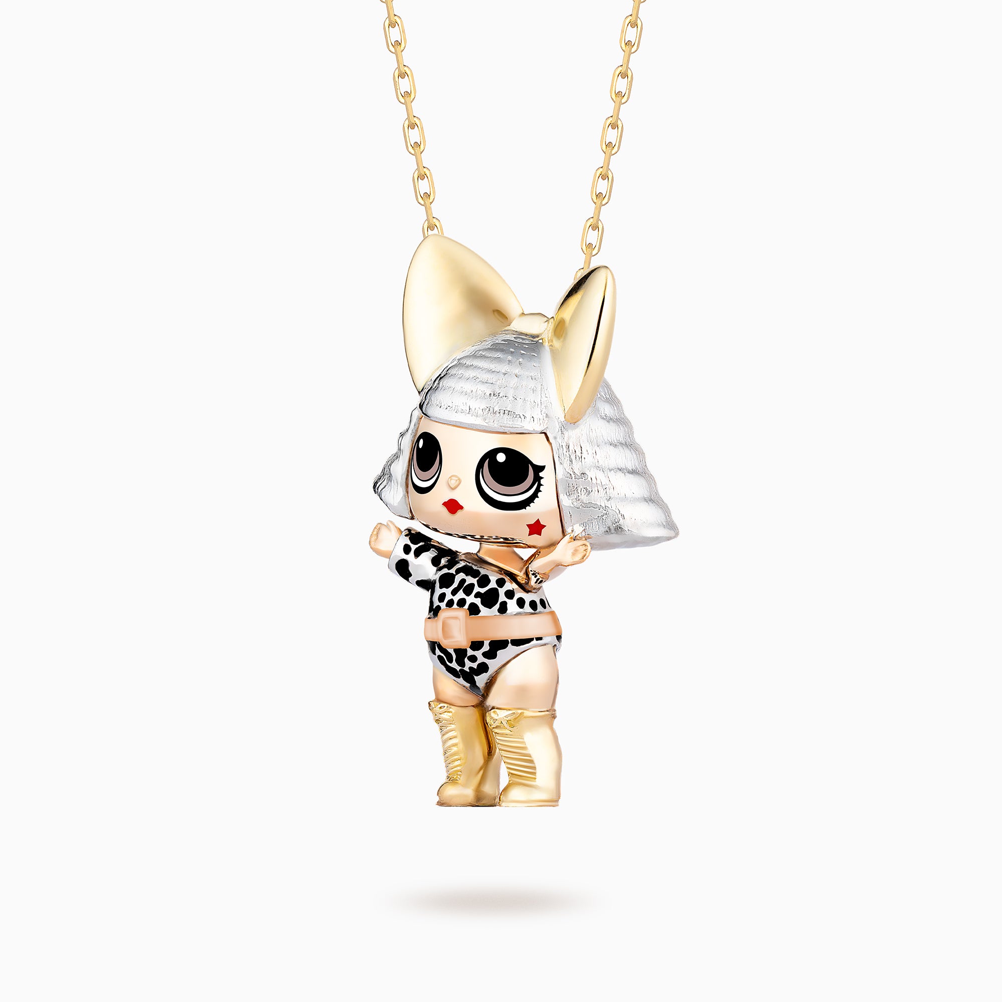 We use ceramic to make the eye and other details of the doll, ensuring they stay forever and add more shine to the jewelry. This enhances the luxury and appeal of the Pendant